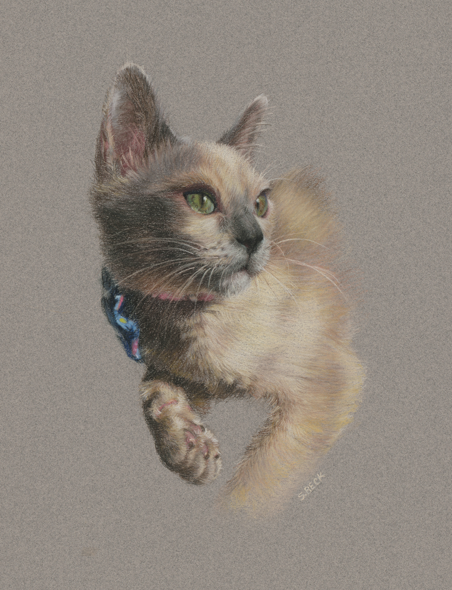 Pet portraits, just like portraits of people, require accuracy and a high degree of likeness. Suzann is well accustomed to working with pets in person and with client reference to create a portrait that captures the unique look and personality of your pet.
